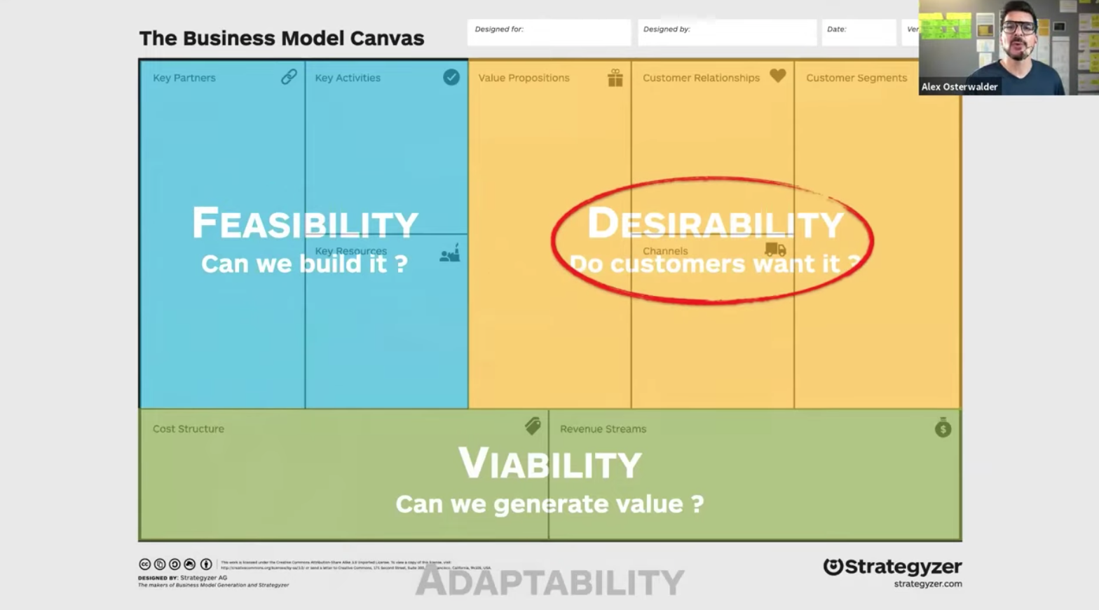 Desirability, feasibility, and viability hypotheses of a business model canvas