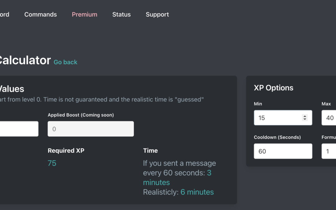 Leveling Up Calculator in Arcane's Discord Bot